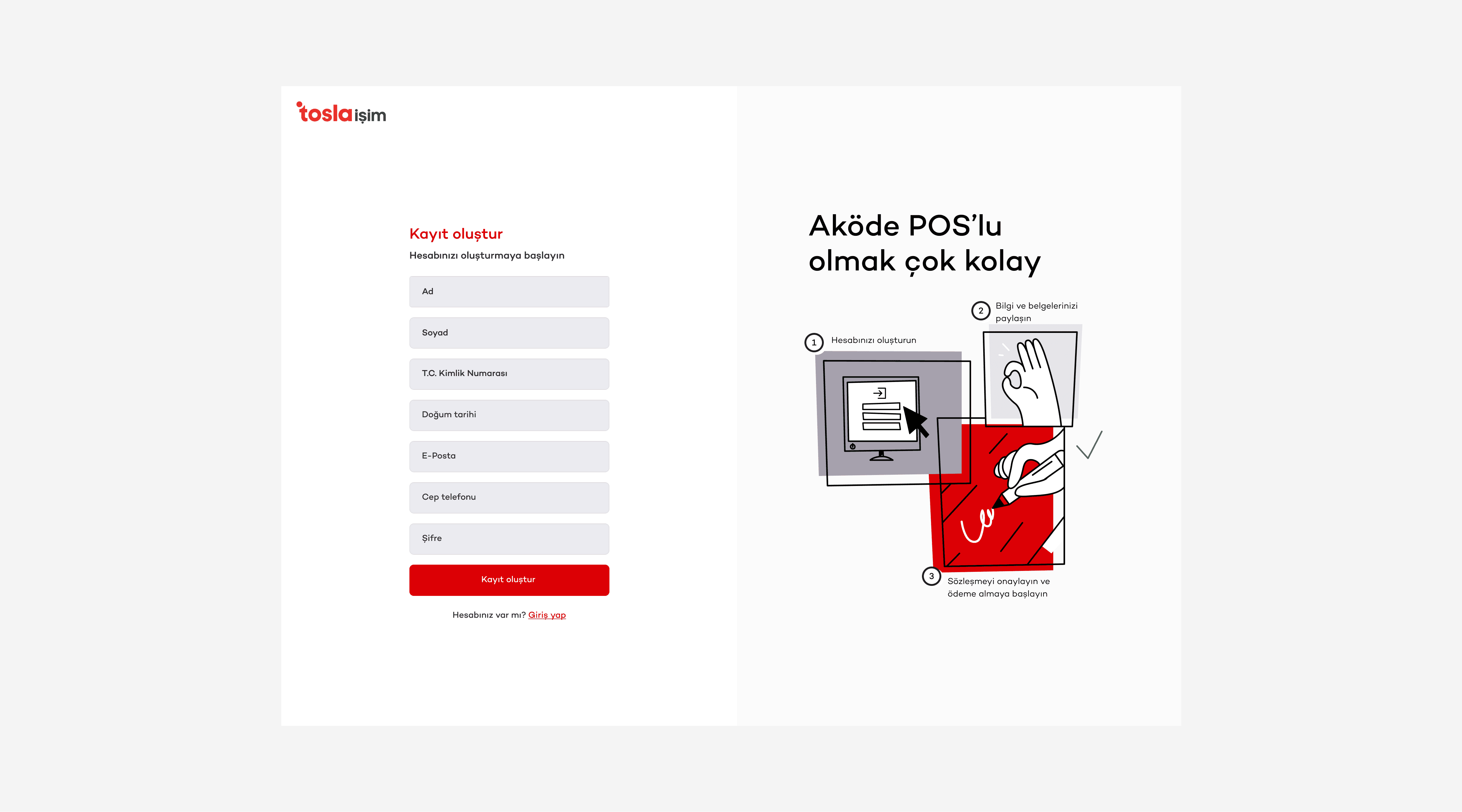 As the design office, we designed the experience and development of Tosla İşim registration and application steps. We have kept the mobile and web experience simple so that these project owners do not have any problems becoming members. We designed the overall design team technology from start to finish. We redeveloped and applied the illustration language used through the illustration design kit from Craft Design.